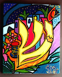 avec la "Hanoukia" en fond. Conçue pour la Synagogue de Créteil (Oratoire Chimon BarYo'Haï)