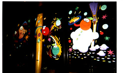 Vitrine conçue pour les fêtes, dans des matérieux plus légers. L'idée étant de donner plus d'éclats à nos fêtes, par une signalitique de couleurs.